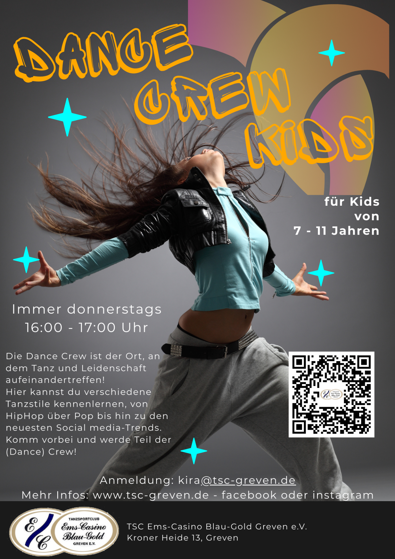 Die Dance Crew ist der Ort, an dem Tanz und Leidenschaft aufeinandertreffen! Hier kannst du verschiedene Tanzstile kennenlernen, von HipHop über Pop bis hin zu den neuesten Social media-Trends.